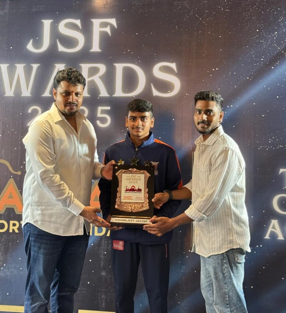 Vishwajeet’s journey began in the third standard when his father took him to a cricket academy in Baramati. Years later, at the age of twelve, he joined Trinity through selection matches. That was the moment when he first met Sourabh Jagdale, who not only introduced him to the JSF environment but also became a consistent source of motivation.